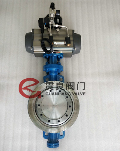 防爆硬密封气动对夹蝶阀具有结构简洁,流阻系数小,流量特性趋于直线,不会滞留杂物。且重量轻,安装方便,驱动扭矩较小的优点。气动对夹硬密封蝶阀既可作切断介质用,又可作调节介质的流量用。金属偏心蝶阀阀杆轴线与蝶板密封面间偏置一个尺寸A,并与阀体通道轴线偏置一个尺寸B,阀座回转轴线与阀体通道轴线形成一个偏心角α,故形成三偏心。蝶阀从0°~90°开启时,蝶板密封面会在开启的瞬间立即脱离阀座密封面,在其90°~0°关闭时,只有在关闭的瞬间,其蝶板圆锥形密封面才会接触并压紧阀座圆锥形密封。防爆硬密封气动对夹蝶阀D673H-16C阀座与蝶板上的密封面之间无任何摩擦,去除了磨损和泄漏的可能性。